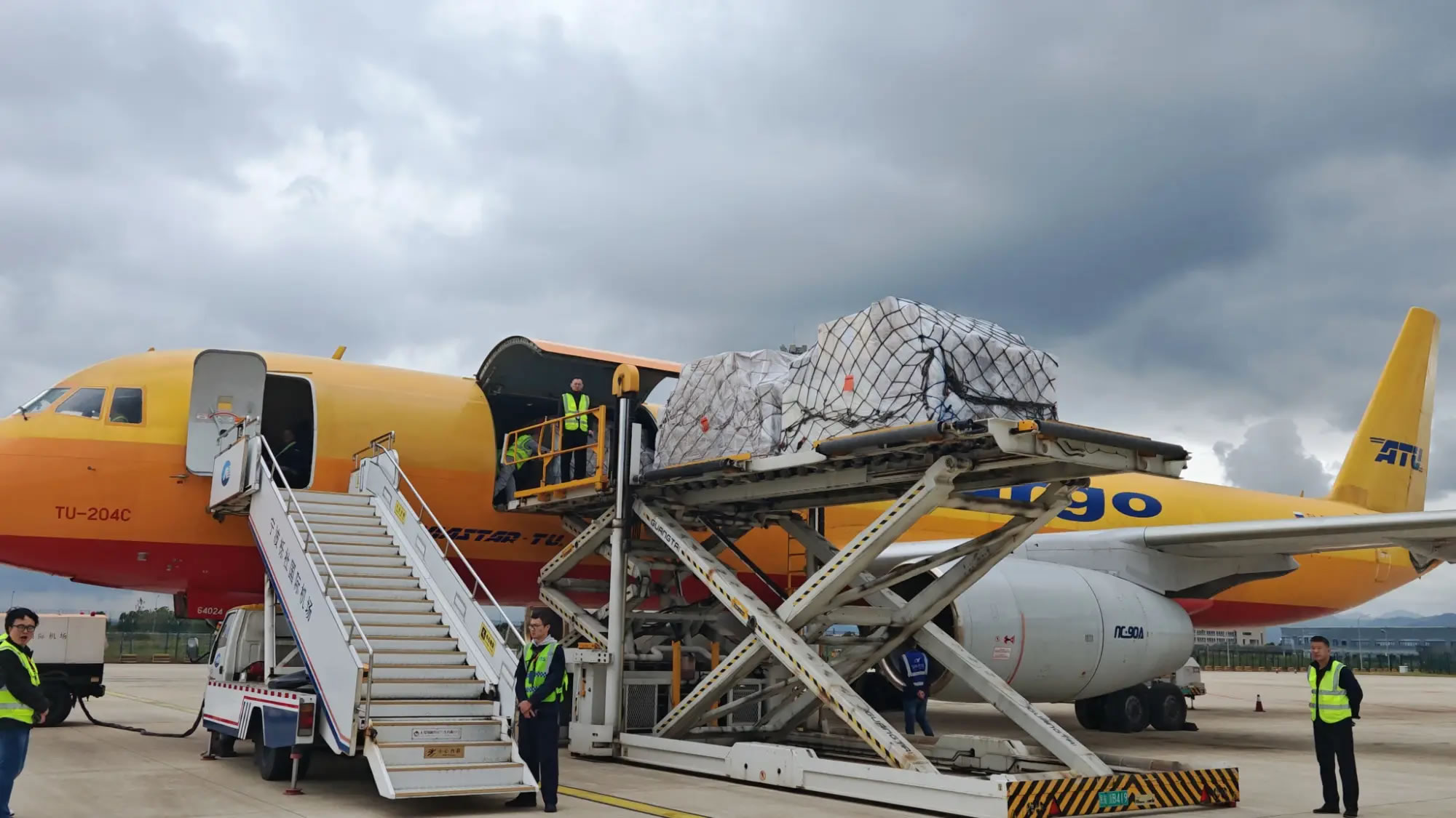 TU204C全貨機(jī)裝貨現(xiàn)場(chǎng)(央廣網(wǎng)發(fā) 寧波機(jī)場(chǎng)供圖)
