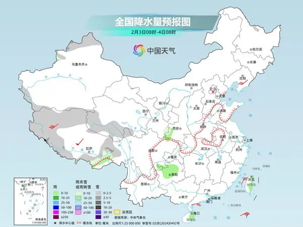 中央氣象臺預(yù)計,今天,新疆北部和西部、西藏西部和東部、青海南部和西部等地部分地區(qū)有小到中雪或雨夾雪,其中,西藏西部局地大雪;貴州西北部和中部、陜西西南部、海南島東部、臺灣島東部等地部分地區(qū)有小雨。