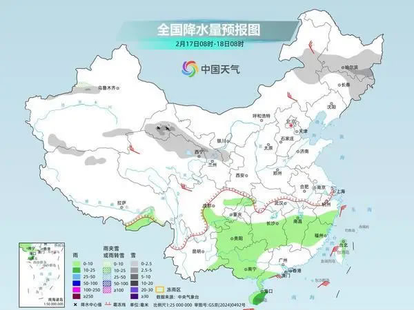 今天是春節(jié)假期第一天,我國降水增多增強(qiáng),江漢、江南等地部分地區(qū)降雨時還可能伴有強(qiáng)對流天氣,陜西、河南等地或現(xiàn)降雪。同時,寒潮將自北向南影響中東部,不少地方迎換季式降溫,江南西部等局地降溫幅度可超12℃。