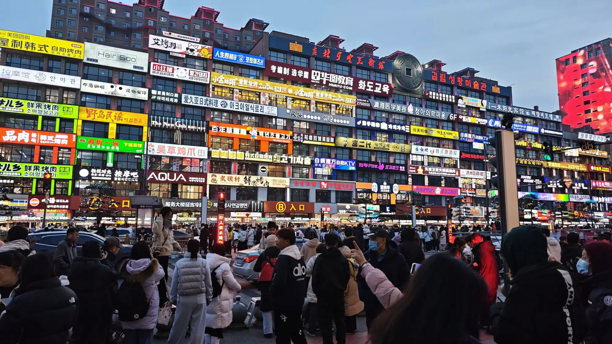 這里雙語招牌隨處可見,延吉網(wǎng)紅彈幕墻燈光璀璨,成為城市最具辨識度的打卡地標。走進中國朝鮮族民俗園,青瓦白墻、飛檐木窗錯落有致,換上朝鮮族服飾,體驗打糕制作、辣白菜腌制,沉浸式感受民俗生活;象帽舞、伽倻琴與節(jié)慶歡歌,讓民族文化可觸可感。