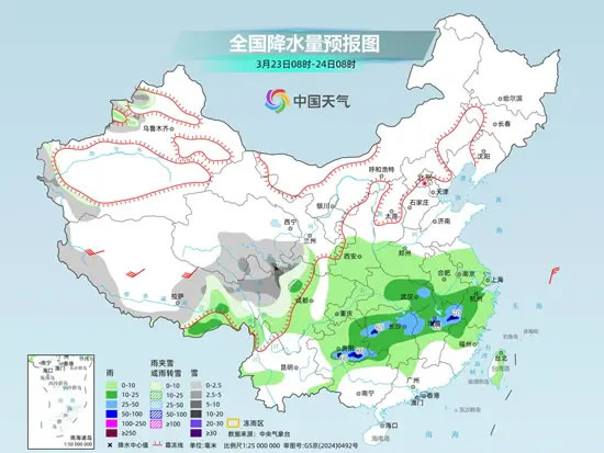 明天,新疆沿天山地區(qū)、西藏東部、青海南部、川西高原北部、甘肅南部、吉林東部、黑龍江東南部等地部分地區(qū)有小到中雪或雨夾雪,其中,西藏東南部、青海西南部、甘肅南部、川西高原北部等地部分地區(qū)有大雪;西藏東南部、云南西北部、重慶東部、貴州北部和東部、湖北西部、湖南北部、江西西部、廣西北部、遼寧東北部等地部分地區(qū)有中到大雨,其中,貴州東北部、湖南西部等地局地有暴雨。
