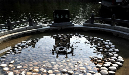 位于百脈泉公園清照?qǐng)@內(nèi),泉池圓形,直徑3米,深0.5米,形若圓盤,泉中池底鋪鵝卵石,泉噴水花色白如玉,噴高可達(dá)數(shù)尺,水落池中如玉石片片,碧水洗白玉,浩純無(wú)暇故名白玉泉(漱玉泉),更與墨泉遙相呼應(yīng),一黑一白,一暗一明,共匯繡江。給李清照故里增添了一幅秀麗的畫(huà)卷。仰首西望,易安樓琴聲陣陣,海棠軒茗香輕飄,黃花館書(shū)畫(huà)琳瑯,金石苑古色古香。泉水風(fēng)貌,文化品味融為一體,給清照?qǐng)@增添了耀眼的光彩。