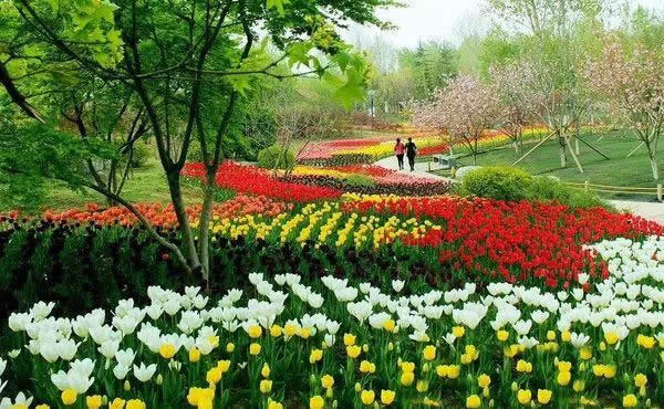 彩色植物園位于公園東南側(cè),面積約3.1公頃,集中展示隨季節(jié)變化而呈現(xiàn)不同色彩的觀花、觀葉、觀果類植物50余種,以色葉樹(shù)種五角楓、櫸樹(shù)、銀杏、黃櫨、紅楓、紫葉矮櫻等植物為主體,配置以色彩鮮艷亮麗的時(shí)令花卉,如郁金香、波斯菊、硫華菊、百日草等,也有“活化石”水杉、銀杏等植物。