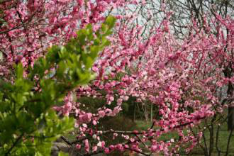 櫻花園位于櫻苑北側(cè),東臨海棠園,北接童樂(lè)園,主要栽培植物以櫻花、櫻桃的各種品種為主,如日本櫻花、日本晚櫻等,另有部分薔薇科的其它植物。春季桃紅櫻粉,落英繽紛,深深淺淺融成一片,云蒸霞蔚。