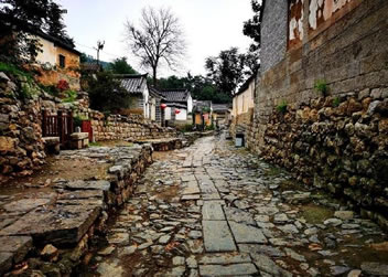 從進(jìn)村的第一道門——禮門開始,便是保留至今的明代始建的古道。山石鋪就的古道中央,嵌有兩溜大塊青石,形似鐵路,村民們形象地稱其為“雙軌”古道!半p軌”不為好看,而有其獨(dú)特的用途。早年村里就規(guī)定,走路必須靠右行,兩股道自然也分成了上下行,這與今天的交通規(guī)則不謀而合。古道的盡頭便是連接各家各戶的小徑,為了防滑,斜坡上的道心用的是沙石而不是青石。有趣的是,在村的中央,還有兩座清康熙年間修建的青石拱橋,上下皆可行人走車馬,大雨時,橋下亦可行洪。橋身青石壘砌,不用灰漿,雖有三百余年的歷史,依然堅(jiān)固如初。有專家說這是現(xiàn)代立交橋的雛形?吹贸鲞@小小的山村從始建之初就經(jīng)過高人指點(diǎn),充分體現(xiàn)了“天人合一”的人文情懷。