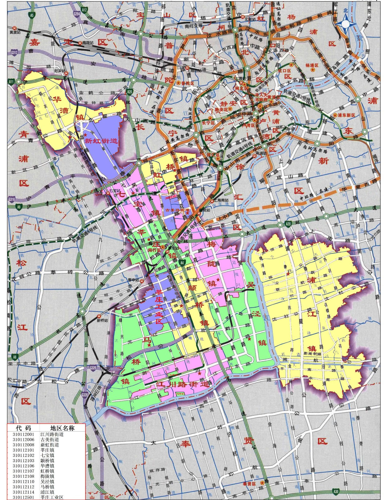 街道:江川路街道、古美街道、新虹街道、浦錦街道