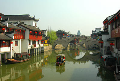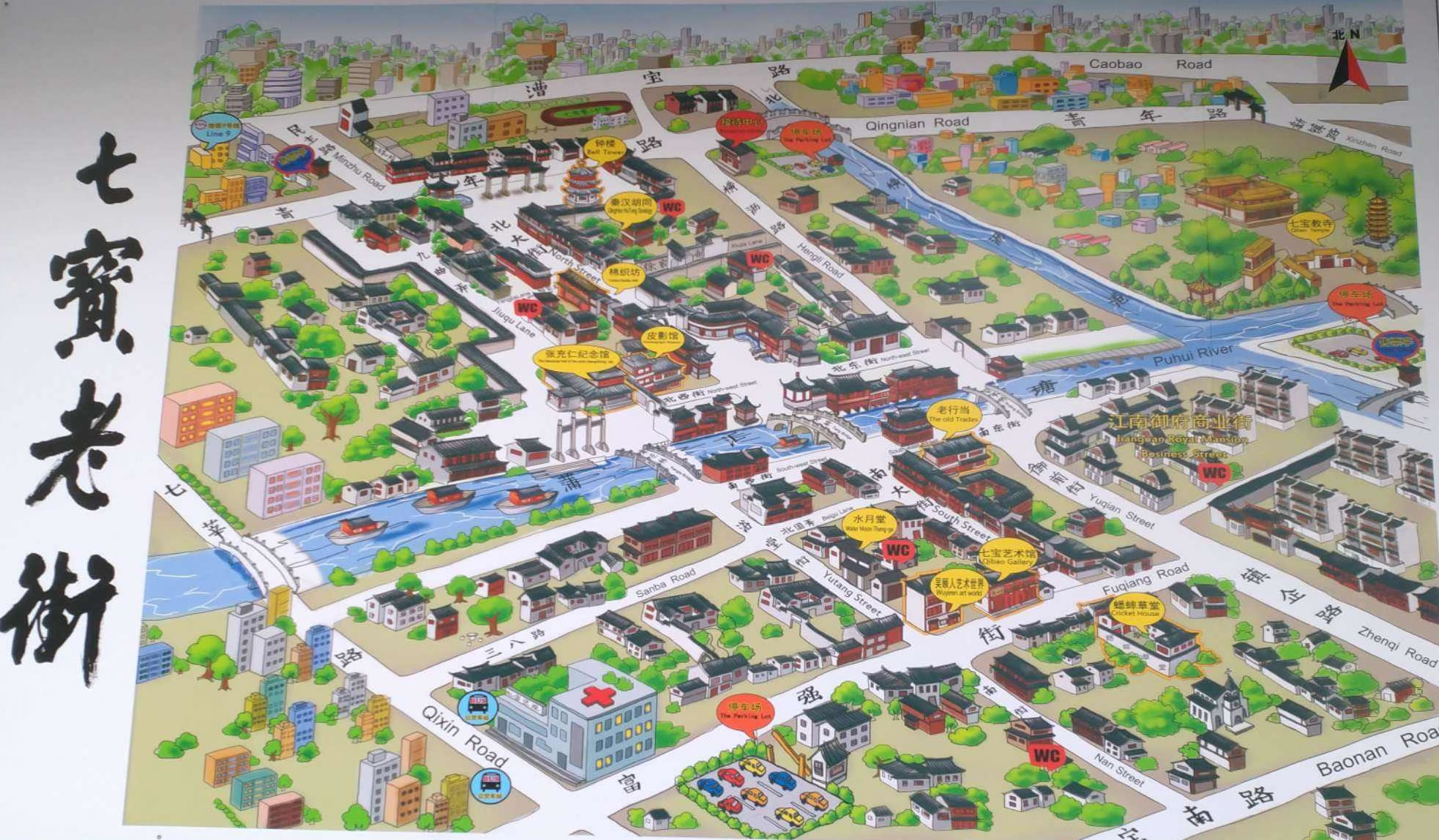 歷史上七寶鎮(zhèn)是個典型的江南水鄉(xiāng)和重要的農(nóng)村集鎮(zhèn)。鎮(zhèn)中橫亙著自西向東的 蒲匯塘,為太湖水系之一,鎮(zhèn)東有南北向的橫瀝港,北接吳淞江,南接黃浦江。蒲匯塘和橫瀝港相交于鎮(zhèn)中心,境內(nèi)另有支河十余條,當(dāng)年溝通市街的石橋就有27座之多。七寶的鎮(zhèn)市,集中于蒲匯塘南北兩條大街。當(dāng)時的七寶鎮(zhèn)上,遍布酒館、茶樓、布店、糧行,人氣很旺盛,一直維持著繁榮昌盛的局面。