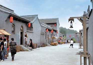 八路村村落建筑總體鳥瞰呈“路”字型,這里高度濃縮八路軍的戰(zhàn)斗精神和光輝業(yè)績,是一個繼承和發(fā)揚八路軍文化,進行愛國主義教育及精神文明教育的生動課堂,突出八路軍的軍旅生活、文化生活,文藝創(chuàng)作、抗戰(zhàn)宣傳、文化教育,軍工生產(chǎn)、政權(quán)建設(shè)、新聞出版和商貿(mào)服務(wù)等內(nèi)容。