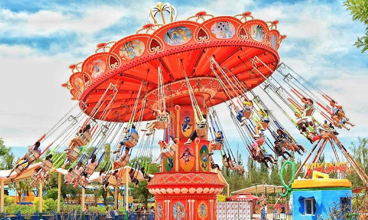 在優(yōu)美、輕快的旋律中,碩大的轉(zhuǎn)盤和轉(zhuǎn)臺錯向旋轉(zhuǎn)、搖擺,隨著轉(zhuǎn)盤的搖擺,塔身徐徐上升。此時,穩(wěn)坐飛椅的游客在離心力的作用下,上下飛旋,時而像在藍(lán)天翱翔,時而像在海上沖浪,能感受到騰云駕霧的快感。想體驗(yàn)兒時蕩秋千的感覺嗎,想體驗(yàn)在空中展翅飛翔的暢快嗎,那就來到高空飛翔盡情的放聲尖叫吧……