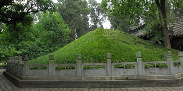 墓高5米,方圓60米,四周圍砌以八卦形花墻。墓前豎碑一塊,上刻“諸葛亮武侯之墓”,墓后有“護(hù)墓雙桂”,高達(dá)19米,胸圍1米左右,樹冠如蓋,濃蔭蔽冢,清雅宜人。墓區(qū)面積2.3萬平方米,現(xiàn)有古建筑60余間,漢桂2株,漢柏22棵。大殿正中神龕上諸葛亮塑象莊重肅穆,令人肅然起敬,書童侍立左右,龕下張苞,關(guān)興分立兩旁。殿后墓冢高6米,周長(zhǎng)60米,呈漢代覆斗式,廟內(nèi)文物薈萃,匾聯(lián)層層,碑碣林立,或頌武侯高風(fēng)亮節(jié),或贊諸葛敏睿才智,墻上丹青繪著諸葛亮當(dāng)年的故事。武侯墓為全國(guó)重點(diǎn)文物保護(hù)單位,著名的文物旅游勝地。