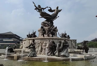〔舞馬臺〕舞馬之所,舞馬是唐玄宗獨出心裁的大發(fā)明!睹骰孰s錄》稱:“玄宗常教舞馬四百蹄,各為左右,分為部目,為某家寵,某家驕。時塞外亦有善馬來貢者,上俾之教司,無不曲盡其妙。因命衣以文繡,絡以金銀,飾其鬃鬣,間雜珠玉。奏其曲謂‘傾杯樂’者數十回。其馬奮首鼓尾,縱橫應節(jié)。又施三重板床,乘馬其上,旋轉如飛,……每千秋節(jié)(玄宗生日)命舞于勤政樓下!薄督蜿栭T》詩注:“其舞馬,安祿山亦將數匹以歸而私習之。其后,田承嗣代安有存者,一旦于廄上聞鼓聲,頓挫起舞,廄人惡之,舉篲以擊之,其馬尚為怒未妍妙,因更奮擊,宛轉曲盡其態(tài)。廝恐以告,承嗣以為妖,遂戮之,而舞馬自此絕焉!倍鸥Α抖冯u殿》詩“斗雞初賜錦,舞馬既登床”即言此。