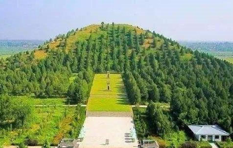 上述與今測量數(shù)字基本相符?傉嫉孛娣e計為56878.25平方米,封土體積848592.92立方米。陵園四周呈方形,平頂,上小下大,形如覆斗,顯得莊嚴穩(wěn)重。