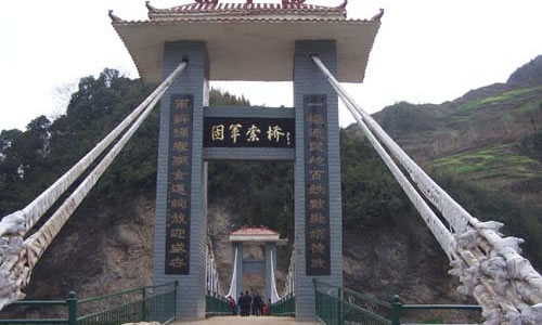 固軍索橋 萬(wàn)源市固軍鄉(xiāng)中河村是萬(wàn)源市2005年“7.8”洪災(zāi)的重災(zāi)村,洪災(zāi)沖毀中河村原有鋼絲橋致中河兩岸2900余人無(wú)法過(guò)河、運(yùn)輸。固軍中河索橋建設(shè)工程得到省以工代賑辦大力支持并被列為2005年省管重點(diǎn)項(xiàng)目,主體工程投資30萬(wàn)元,其中國(guó)家投入以工代賑資金15萬(wàn)元,下差資金由當(dāng)?shù)卣腿罕娮曰I解決。該工程由萬(wàn)源市交通局設(shè)計(jì)施工圖紙并負(fù)責(zé)技術(shù)監(jiān)管,橋設(shè)計(jì)為鋼筋混凝土斜拉索橋,全長(zhǎng)95延米,寬3.5米,可承受5噸以下的微型車(chē)輛通行。