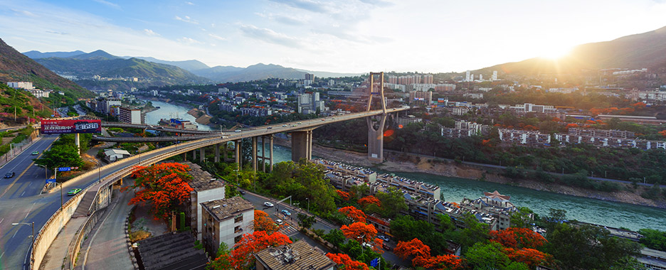 攀枝花市,位于中國(guó)西南川滇交界部,金沙江與雅礱江交匯于此。東、北面與四川省涼山彝族自治州的會(huì)理、德昌、鹽源3縣接壤,西、南面與云南省的寧蒗、華坪、永仁3縣交界,總面積7440平方千米;北距成都749千米,南接昆明351千米,是四川省通往華南、東南亞沿邊、沿?诎兜淖罱c(diǎn)。