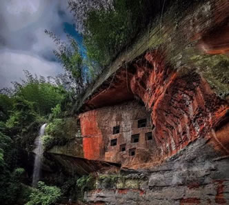 七個(gè)洞崖墓群位于綿溪河?xùn)|岸的紅色砂巖峭壁上,開鑿于約2000年前的東漢。過去,當(dāng)?shù)厝税哑邆(gè)洞稱為“蠻子洞”,認(rèn)為是古時(shí)候蠻夷的住所,后來,經(jīng)考古專家考證為東漢時(shí)期的崖墓群。崖墓的特點(diǎn)就是利用山崖開鑿墓室,從東漢時(shí)期開始至之后的約500年間,崖墓是四川,特別是川南長江及其支流兩岸地區(qū)典型的一種墓葬方式,在整個(gè)中國都非常具有代表性。