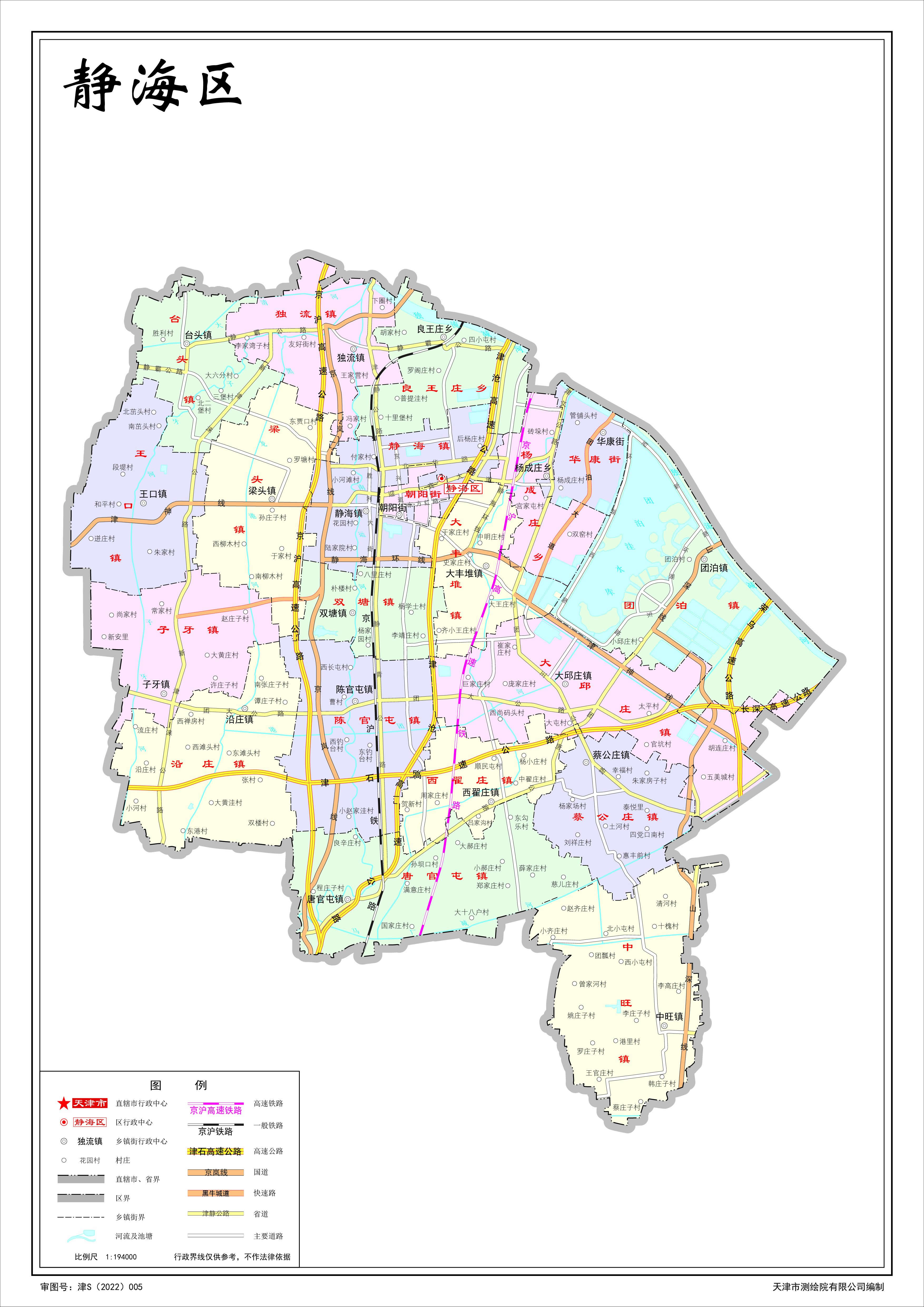 靜海區(qū),隸屬天津市,位于天津西南部。東與濱海新區(qū)為鄰,東北隔獨(dú)流減河與西青區(qū)相望,西北與霸州市相連,西與文安縣接壤,西南與大城縣為鄰,東南與黃驊市相依,南與青縣為界,總面積1475.68平方千米。靜海區(qū)常住人口77.64萬(wàn)人,戶(hù)籍人口64.37萬(wàn)人。靜海區(qū)下轄2個(gè)街道、16個(gè)鎮(zhèn)、2個(gè)鄉(xiāng)。靜海區(qū)人民政府駐靜海鎮(zhèn)迎賓大道99號(hào)。