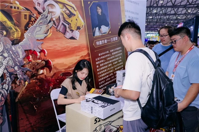 作為國創(chuàng)變形機(jī)甲代表性IP,猛獸匣(BEASTBOX)系列成為本次52TOYS展區(qū)的最大亮點(diǎn),產(chǎn)品和內(nèi)容成果頗豐。備受玩家期待的猛獸匣首部官方小說《猛獸匣:金屬之歌》珍藏版在展會(huì)現(xiàn)場超前發(fā)售,小說作者、曾榮獲中國科幻銀河獎(jiǎng)最佳新人獎(jiǎng)的科幻作家王諾諾親臨現(xiàn)場簽售。小說以其精美的裝幀與引人入勝的設(shè)定,迅速成為資深玩家與科幻愛好者爭相收藏的對象,現(xiàn)場等候簽售及購買的粉絲排起長龍。