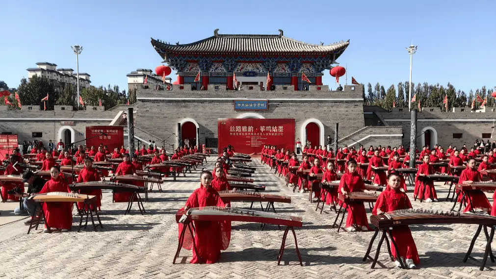 10月12日,新疆阿克蘇市以“絲路雅韻·箏鳴姑墨”為主題,舉辦弘揚中華傳統文化百人古箏展演活動。
