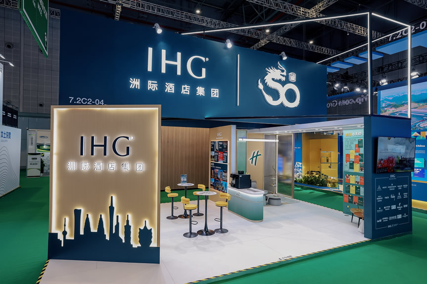 進博八載,全勤筑夢 作為進博會的“全勤生”,洲際酒店集團連續(xù)八年亮相這一國家級開放平臺,持續(xù)深化與各方伙伴的交流合作,穩(wěn)步提升品牌影響力。今年,集團以入華五十周年為契機,傾力打造以“洲際在華五十載”為主線的展區(qū),以煥新的敘事方式回顧集團與中國文旅攜手發(fā)展的半世紀征程——從伴隨文旅產業(yè)的起步,到見證其成長為“支柱產業(yè)、民生產業(yè)、幸福產業(yè)”三位一體的重要經濟增長極。展區(qū)通過時間軸、數(shù)據(jù)可視化等多元模式生動呈現(xiàn)了品牌傳承與創(chuàng)新成果,并勾勒出集團在大中華區(qū)市場的廣闊布局與持續(xù)成長的版圖,充分展現(xiàn)洲際酒店集團深耕中國、融入行業(yè)、共創(chuàng)未來的堅定步伐。