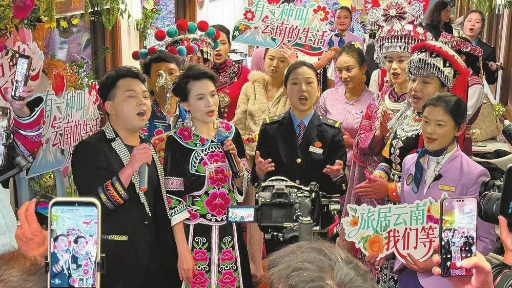 此次推廣活動串聯(lián)起昆明和蒙自,來自云南省花燈劇院、昆明市民族歌舞劇院等團(tuán)隊(duì)的數(shù)十名歌唱演員,在“星光·瀾湄號”列車和蒙自南湖畔,通過“一首民歌、一位歌手、一個推介”的方式,向公眾推薦“坐著火車游云南”的精品線路和特色旅居目的地,將有力提升“來云南、游云南、旅居云南”知名度,為冬季旅游消費(fèi)市場注入活力。