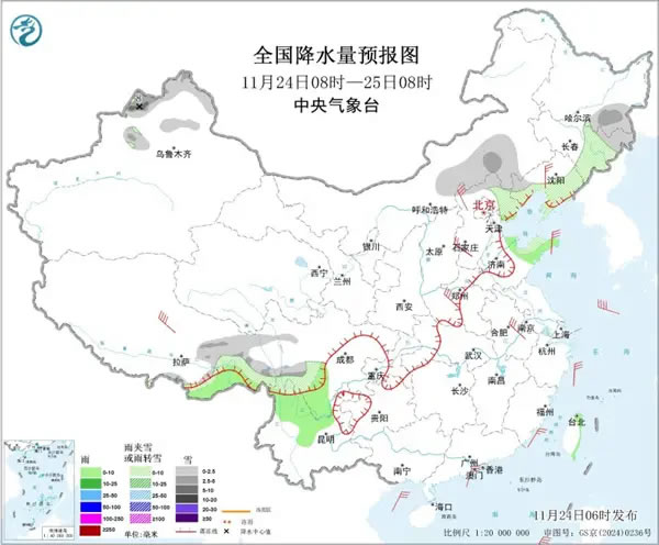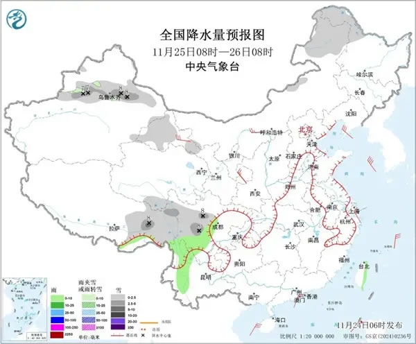 西南東北等地雨雪頻繁 中東部大部降水稀少