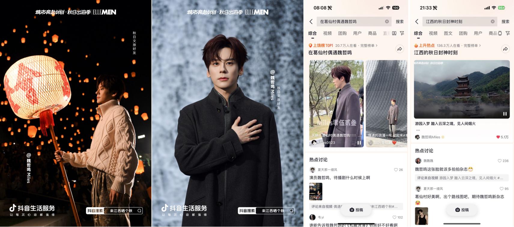 抖音牽手“秋日男友”魏哲鳴前往江西上饒葛仙村拍攝文旅宣發(fā)視頻引發(fā)廣泛關(guān)注,路透內(nèi)容#在葛仙村偶遇魏哲鳴 登上上饒同城榜TOP1;主視頻發(fā)布后,#江西的秋日封神時(shí)刻 更登頂同城榜及全國(guó)種草榜TOP6。活動(dòng)還與綜藝《今晚組個(gè)局》實(shí)現(xiàn)聯(lián)動(dòng),吳昕、代露娃、郭俊辰、何洛洛等明星演員前往上饒拍攝定制化文旅內(nèi)容,#上饒葛仙村千燈會(huì)偶遇明星 #何洛洛代露娃上饒葛仙村浪漫赴約 等路透內(nèi)容與節(jié)目看點(diǎn)登頂上饒同城榜TOP1,#組局團(tuán)在上饒千燈會(huì)一起祈愿 搶占同城榜TOP2。明星效應(yīng)有效激發(fā)用戶(hù)出行意愿,葛仙村交易額同比403%顯著增長(zhǎng),持續(xù)引爆目的地&商家出圈。