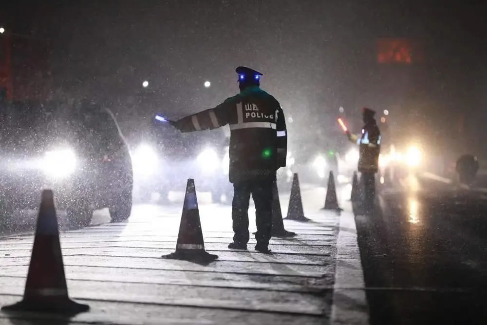 交警在雪天指揮車輛通行(資料圖片)。 新華社發(fā)