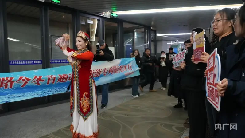央廣網(wǎng)烏魯木齊12月13日消息(記者丁安)12月12日23時20分,隨著Y925次旅客列車從新疆烏魯木齊站鳴笛啟程,拉開了今冬新疆鐵路冰雪旅游的序幕。近百名來自浙江、江蘇、天津等地的游客乘坐專列,從烏魯木齊出發(fā)直達“中國雪都——阿勒泰”,開啟為期4天的冰雪之旅。