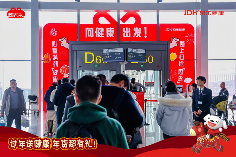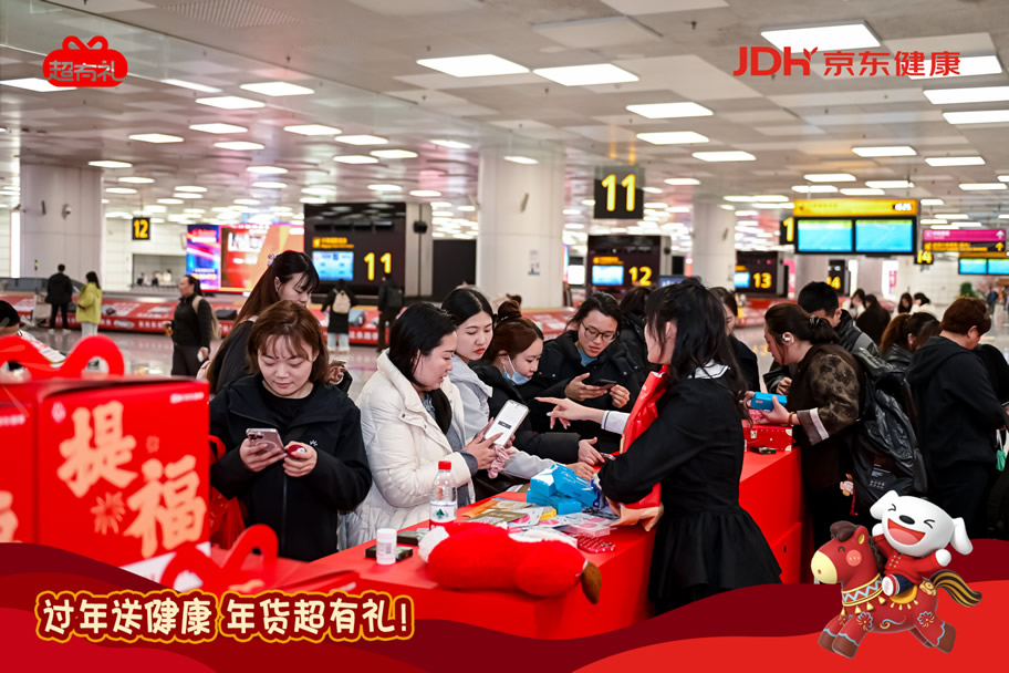 京東旅行攜手京東健康“超有禮”IP在此次年貨節(jié)中,通過全鏈路航空?qǐng)鼍盃I(yíng)銷實(shí)現(xiàn)了品牌與用戶的深度互動(dòng),圍繞“機(jī)場(chǎng)快閃—主題登機(jī)口—主題航班—行李傳送帶驚喜事件”構(gòu)建貫穿出行始終的品牌體驗(yàn)閉環(huán),以創(chuàng)新的事件組合與場(chǎng)景融入,將健康關(guān)懷自然嵌入用戶春運(yùn)旅程。這一策略高度適配春節(jié)出行場(chǎng)景,不僅精準(zhǔn)觸達(dá)返鄉(xiāng)、探親、商旅等多類用戶群體,更通過具象化的健康禮品派發(fā)、溫情驚喜體驗(yàn)等,持續(xù)強(qiáng)化“春節(jié)送健康禮”的消費(fèi)心智,成功將健康禮贈(zèng)塑造為新年問候的情感載體與品質(zhì)之選。