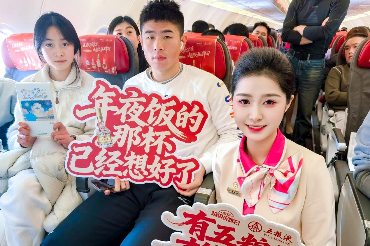 京東旅行攜手五糧液在此次年貨節(jié)中圍繞“機(jī)場(chǎng)快閃—主題航班—行李傳送帶驚喜事件”構(gòu)建全鏈路航空?qǐng)鼍盃I(yíng)銷體系,通過場(chǎng)景沉浸與體驗(yàn)互動(dòng)相結(jié)合的方式,創(chuàng)新打造“空中禮遇”高端消費(fèi)場(chǎng)景。這一營(yíng)銷策略精準(zhǔn)契合春節(jié)出行期間高品質(zhì)用戶的禮贈(zèng)需求,在航空?qǐng)鼍斑@類高凈值人群聚集場(chǎng)景中實(shí)現(xiàn)精準(zhǔn)觸達(dá)。通過文化展示、互動(dòng)與禮贈(zèng)驚喜的多維滲透,五糧液X京東超級(jí)品牌日不僅強(qiáng)化了其作為春節(jié)高端禮贈(zèng)首選品牌的認(rèn)知,更成功將“飛行途中·禮載心意”提升為春節(jié)消費(fèi)的新風(fēng)尚,進(jìn)一步鞏固了在高端年貨市場(chǎng)中的心智占位與品牌勢(shì)能。