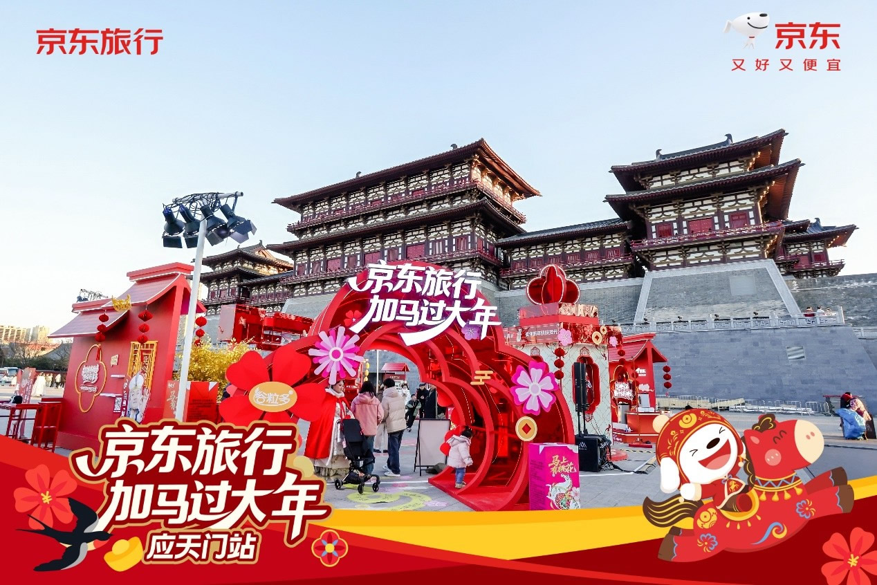 與此同時(shí),在洛陽應(yīng)天門景區(qū),京東旅行攜手京東數(shù)碼、京東物流、伊利等品類品牌,以“國(guó)風(fēng)快閃”為核心形式,融合真實(shí)馬匹巡游、唐風(fēng)NPC互動(dòng)、馬車送年貨等話題事件,將傳統(tǒng)文化場(chǎng)景與品牌產(chǎn)品自然嫁接,不僅強(qiáng)化了景區(qū)文化體驗(yàn)的鮮活感,更通過“真馬營(yíng)銷”等創(chuàng)新手段在社交平臺(tái)形成二次傳播,成功塑造了“文旅+品牌”的場(chǎng)景營(yíng)銷新范式。