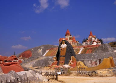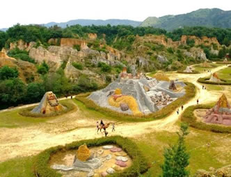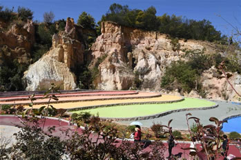 以沙成林,歷經(jīng)千古的沙林,必為一“怪”。眾峰參差,形異神幻,必是一“奇”。七彩紛呈,流光溢彩,妙筆在天。沙內(nèi)滲泉,甘露長漣,滋沙養(yǎng)人。風(fēng)沙不揚,水沙不染,冥冥費解。依山臨湖,磅礴氣概,天地奉獻。這寰于一絕的奇景,吸向性,潛在力,輻射度,都具有特殊價值,憑借這一世界獨有的資源優(yōu)勢,借助沙雕藝術(shù)魅力,經(jīng)過精心策劃,認(rèn)真組織,于2001年至今成功舉辦了五屆主題分別為“千年夢幻”、“走進名著”、“五洲風(fēng)采”、“音樂神采”、“爨史風(fēng)情”的全球首創(chuàng)、世界唯一的國際彩色沙雕節(jié)暨沙雕大賽。