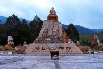 沙內(nèi)滲泉,甘露長漣,滋沙養(yǎng)人。風(fēng)沙不揚,水沙不染,冥冥費解。依山臨湖,磅礴氣概,天地奉獻。這寰于一絕的奇景,吸向性,潛在力,輻射度,都具有特殊價值,憑借這一世界獨有的資源優(yōu)勢,借助沙雕藝術(shù)魅力,經(jīng)過精心策劃,認(rèn)真組織,于2001年至今成功舉辦了五屆主題分別為“千年夢幻”、“走進名著”、“五洲風(fēng)采”、“音樂神采”、“爨史風(fēng)情”的全球首創(chuàng)、世界唯一的國際彩色沙雕節(jié)暨沙雕大賽。