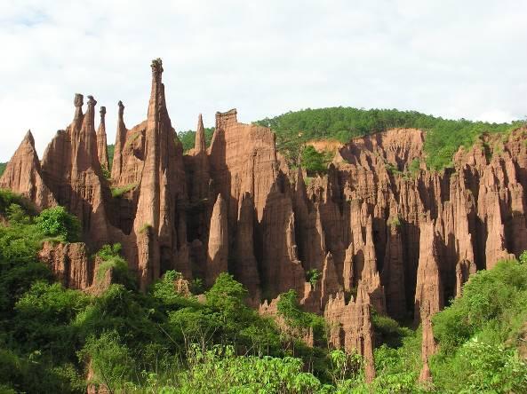 景東土林在景東縣城東南的文井鎮(zhèn),距縣城24公里,面積約0.4平方公里,是由于水土流失等因素形成的奇形怪狀的土柱,與云南元謀土林相似。