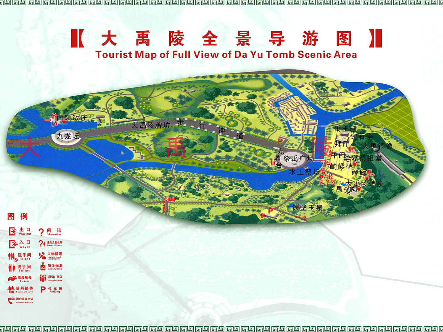 1995年5月15日,江澤民同志親臨大禹陵視察,高度評價大禹、大禹精神及公祭大禹陵活動,并親筆題寫了“大禹陵”坊額。
