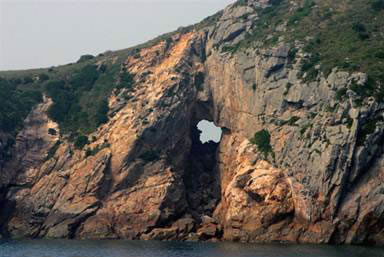 能以人力或風(fēng)力推動(dòng)而搖擺的大巖石,在各地勻有發(fā)現(xiàn)。南麂三盤(pán)尾石門(mén)旁的風(fēng)動(dòng)巖卻別有情趣。此石高約5.5米,直徑4米,形如銅鼓,卻裂成兩瓣,一瓣是“靜如處子”分外端莊;另一瓣,凡遇上5級(jí)以上大風(fēng),便自行搖動(dòng),可謂“動(dòng)似脫兔”,還以發(fā)出悅耳聲響,宛如海底傳來(lái)的進(jìn)軍號(hào)角。倘若無(wú)風(fēng)時(shí),那只得勞駕游客,憑力氣去推、去搖。面對(duì)風(fēng)動(dòng)巖了,聯(lián)想起佛教中關(guān)于“風(fēng)動(dòng)也,情動(dòng)也,見(jiàn)仁者自己心動(dòng)”的“因緣和合”典故,似乎明白了自然景觀中也充滿生活哲理。此巖其自身根基不穩(wěn),加上風(fēng)的外力,便顯得搖擺不定。